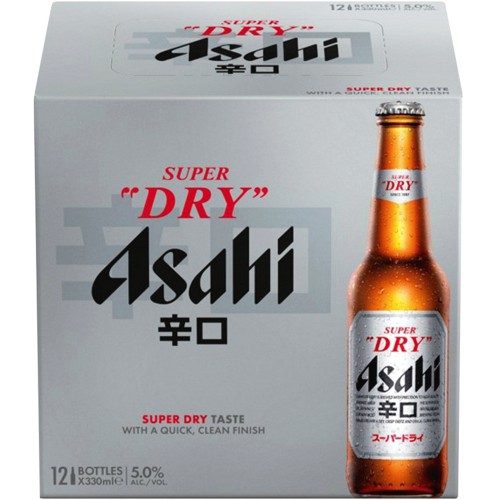 Asahi Super Dry Lager Beer Bottles (12 x 330ml)
