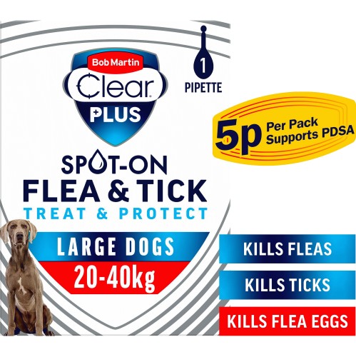 1 review for Bob Martin Clear Plus Spot-On Flea & Tick Solution for Large Dogs 1 Pipette (268mg, 241.2mg)