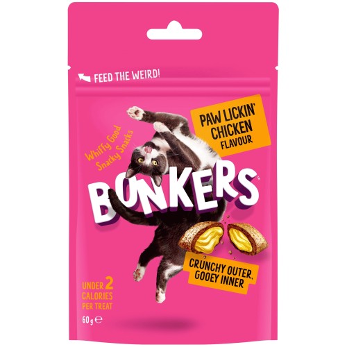 Bonkers Crunchy And Soft Cat Treats Paw Lickin’ Chicken Flavour 2.1 oz (60g)