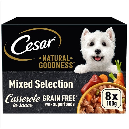 - Dog food trays include superfoods and prebiotics.