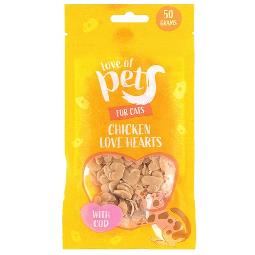 - Chicken & Cod Love Heart Cat Treats are a snack for cats.