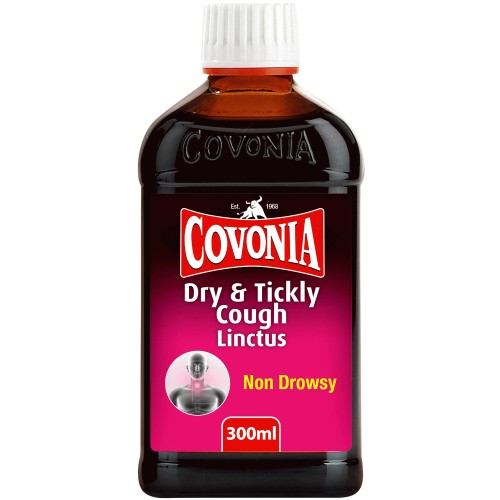 - Covonia Dry & Tickly Cough Linctus is for relief of symptoms of coughs and sore throats