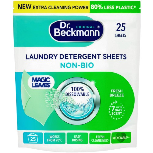 Dr. Beckmann Magic Leaves Non-Bio Laundry Detergent Sheets Intense Fresh (25 x 100g)