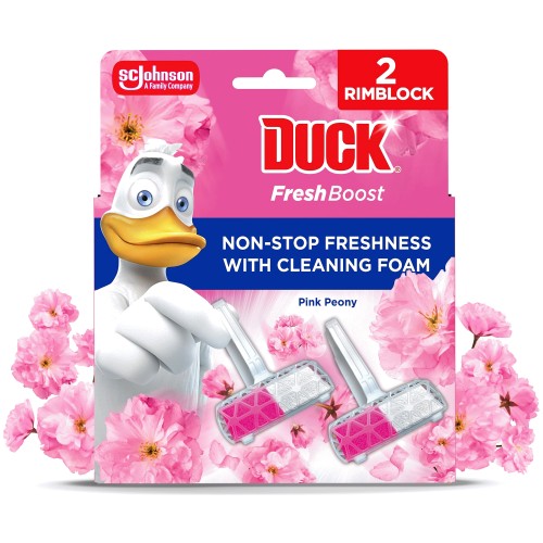 Duck Fresh Boost Toilet Rim Block Pink Peony (2 x 16g)
