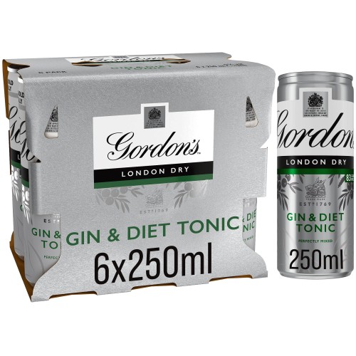 Gordon’s London Dry Gin & Diet Tonic Ready To Drink 5% Vol Cans (6 x 250ml)