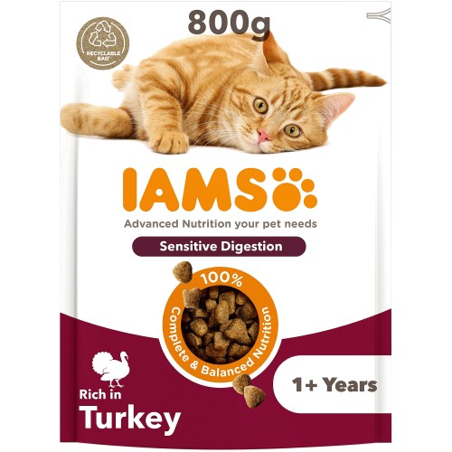 Iams Dry Cat Rich In Turkey For Sensitive Digestion 1+ Years (800g)