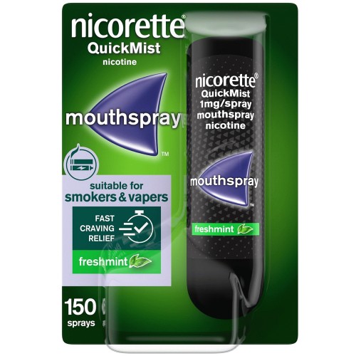 - Nicorette QuickMist is used to relieve and/or prevent withdrawal symptoms and reduce cravings when trying to stop smoking or cutting down the number of cigarettes smoked