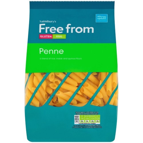 - Dried penne pasta made from rice, maize and quinoa flours