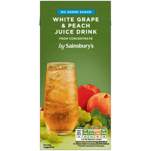 - White grape & peach juice drink from concentrate with sweeteners