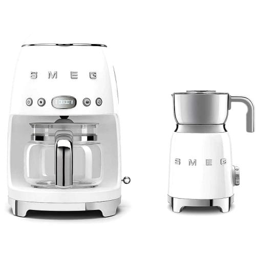 - Bundle includes a drip coffee machine and milk frother in white