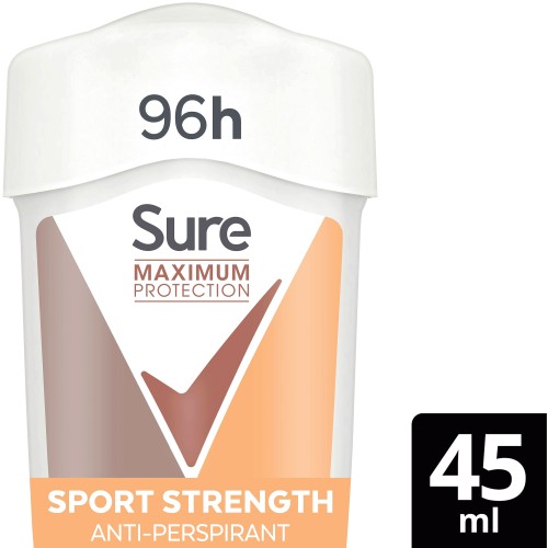 - Sure Maximum Protection Sport Strength Anti-perspirant Cream Stick provides powerful protection against sweat and odour